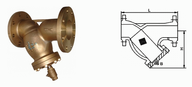 鎳鋁青銅Y型過(guò)濾器外形結(jié)構(gòu)圖: