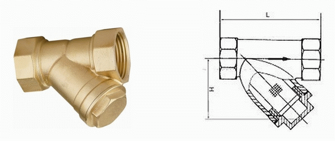 黃銅螺紋Y型過濾器外形結構圖:
