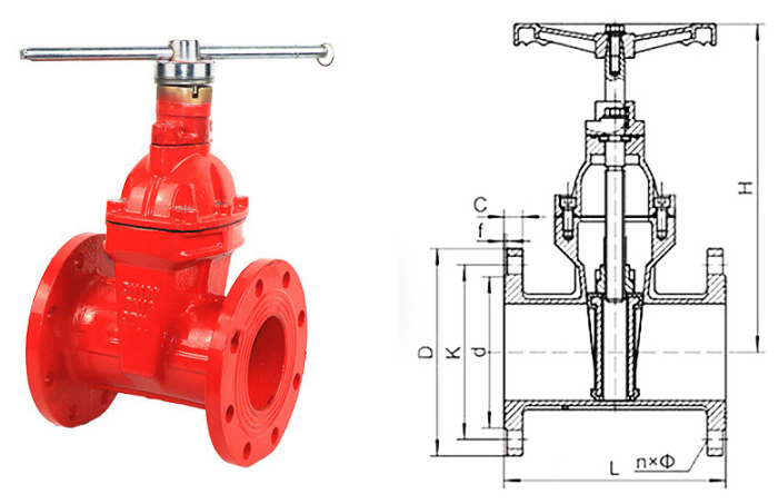 防盜消防閘閥外形結(jié)構(gòu)圖: