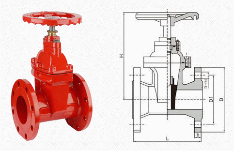 暗桿消防閘閥外形結(jié)構(gòu)圖: