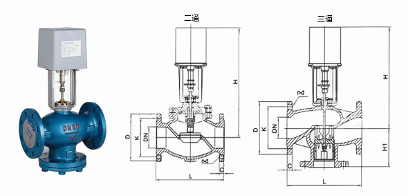 電動兩通閥外形結構圖: