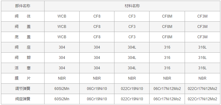 法蘭減壓穩(wěn)壓閥零件材料: