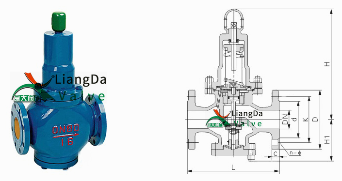 法蘭減壓穩(wěn)壓閥外形結(jié)構(gòu)圖: