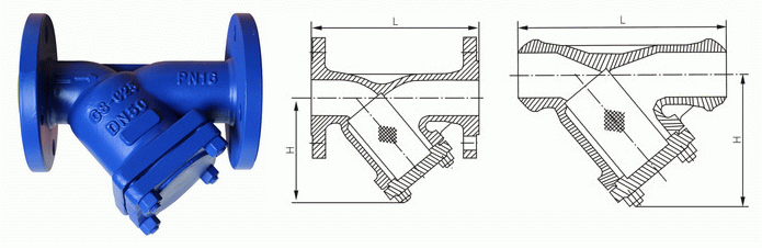 德標(biāo)Y型法蘭過濾器外形結(jié)構(gòu)圖:
