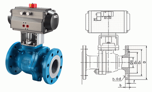 氣動襯氟球閥外形結(jié)構(gòu)圖: