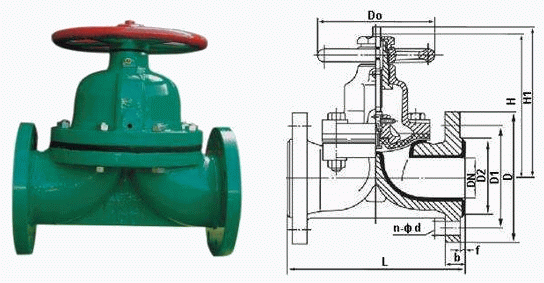 G41J襯膠隔膜閥外形結(jié)構(gòu)圖: