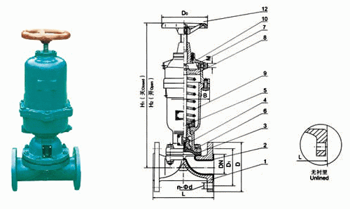 3、視膠隔膜閥的閥體內(nèi)腔表面視復(fù)有廳供選擇的多種橡膠。因此具有優(yōu)越的耐腐蝕的特點(diǎn)。