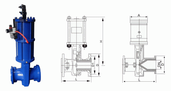 氣動(dòng)膠管閥外形結(jié)構(gòu)圖:
