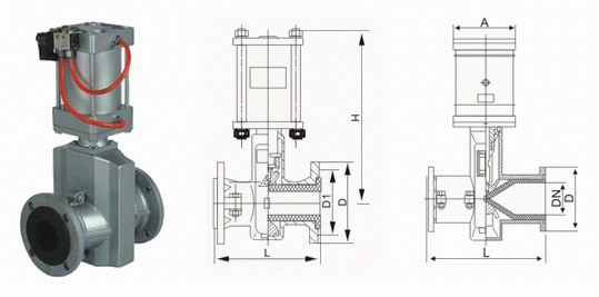 耐磨氣動(dòng)管夾閥外形結(jié)構(gòu)圖: