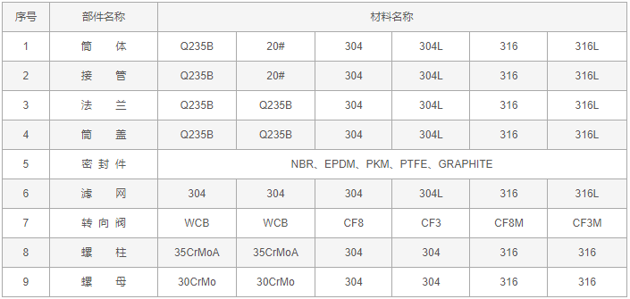 直角式自動(dòng)反沖洗過(guò)濾器零件材料表: