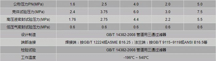 承插焊Y型過濾器性能規(guī)范表: