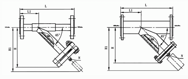 承插焊Y型過濾器主要由主管、斜管、法蘭和法蘭蓋、緊固件及過濾網(wǎng)、排污絲堵等零部件組成,其制造要求、試驗方法及檢驗規(guī)則等都是按《管道用三通過濾器》GB/T 14382-2008標(biāo)準(zhǔn)執(zhí)行,該Y型過濾器是用無縫鋼管由主管和斜管按45度角通過焊接工藝焊制而成的,它通過對焊、承插焊、螺紋、法蘭等方式與管道連接,斜管內(nèi)置有相應(yīng)過濾面積和過濾精度的過濾網(wǎng),本過濾器過濾網(wǎng)一般采用不銹鋼濾筒和絲網(wǎng)雙層結(jié)構(gòu),以30目/英寸作為標(biāo)準(zhǔn)網(wǎng),可攔截≥614μm粒徑的固體顆粒,也可根據(jù)客戶工況要求定做過濾網(wǎng)。