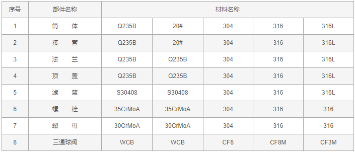 雙聯(lián)切換過濾器零件材料:
