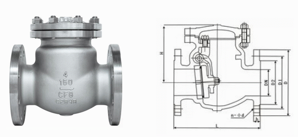 不銹鋼美標(biāo)止回閥外形結(jié)構(gòu)圖: