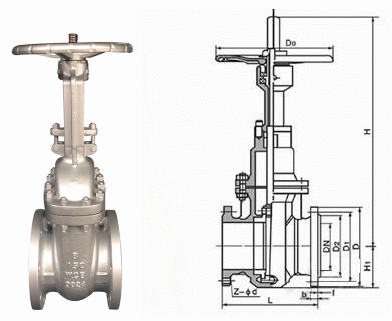 美標(biāo)手動(dòng)閘閥外形結(jié)構(gòu)圖: