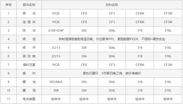 電動(dòng)卸灰球閥零件材料: