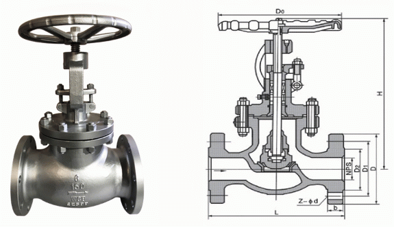 美標(biāo)手動(dòng)截止閥外形結(jié)構(gòu)圖: