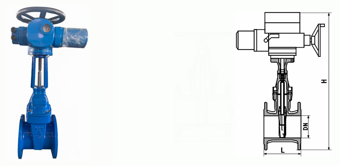 電動(dòng)明桿軟密封閘閥外形結(jié)構(gòu)圖: