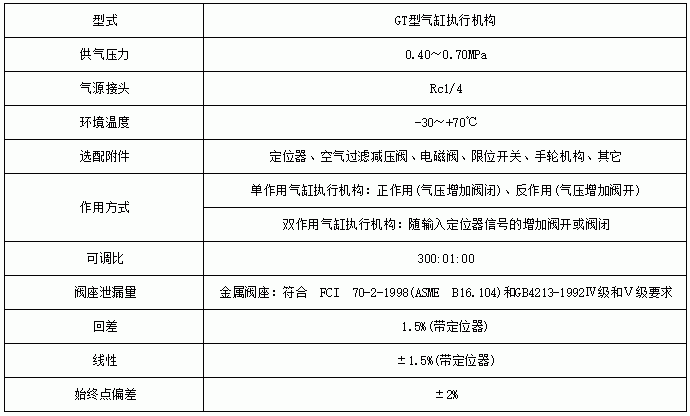 氣動V型切斷閥執(zhí)行器參數(shù):