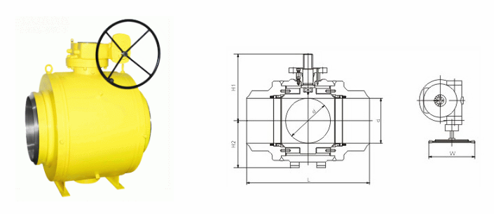 鍛鋼全焊接球閥外形結(jié)構(gòu)圖: