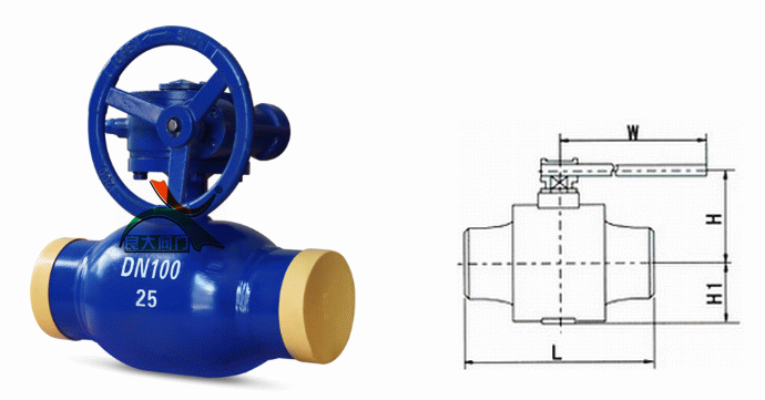 蝸輪全焊接球閥外形結(jié)構(gòu)圖: