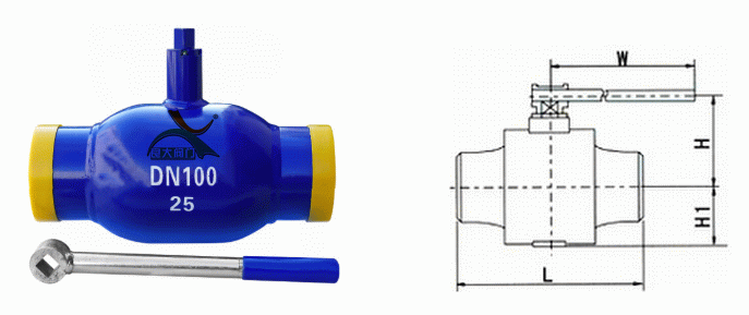 手動全焊接球閥外形結(jié)構(gòu)圖: