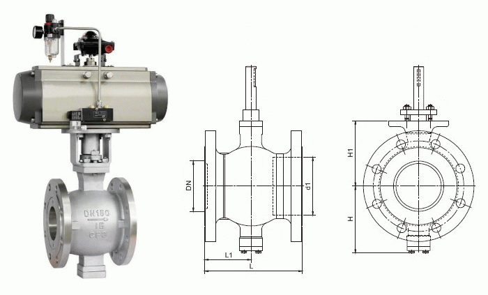 不銹鋼氣動V型球閥外形結(jié)構(gòu)圖: