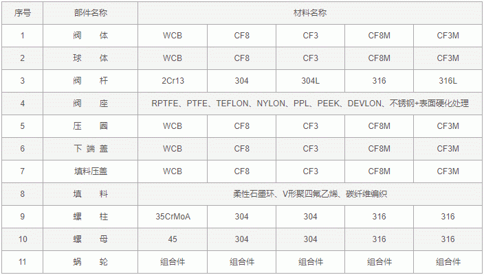 V型調節(jié)球閥零件材料:
