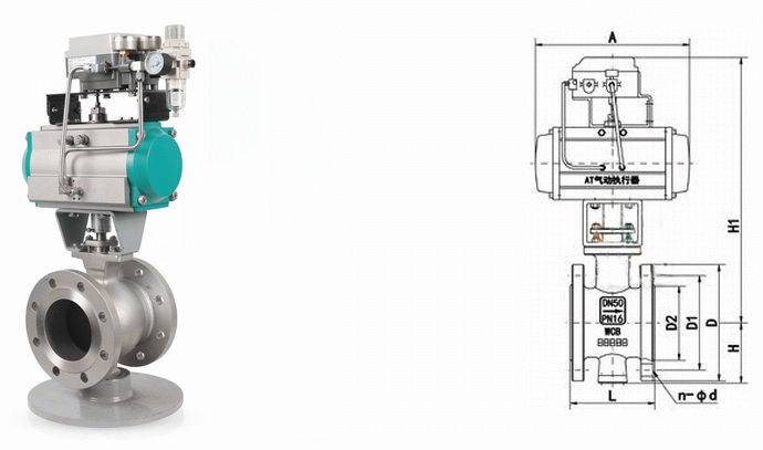 氣動V型調(diào)節(jié)球閥外形結構圖: