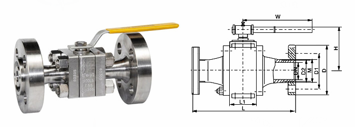 F55雙相鋼球閥外形結(jié)構(gòu)圖: