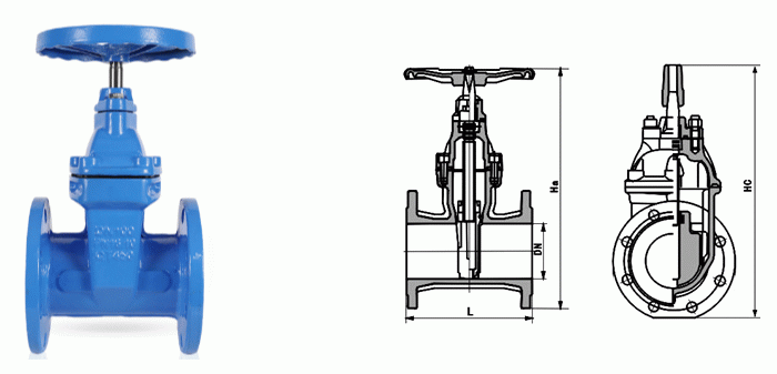 軟密封閘閥外形結(jié)構(gòu)圖: