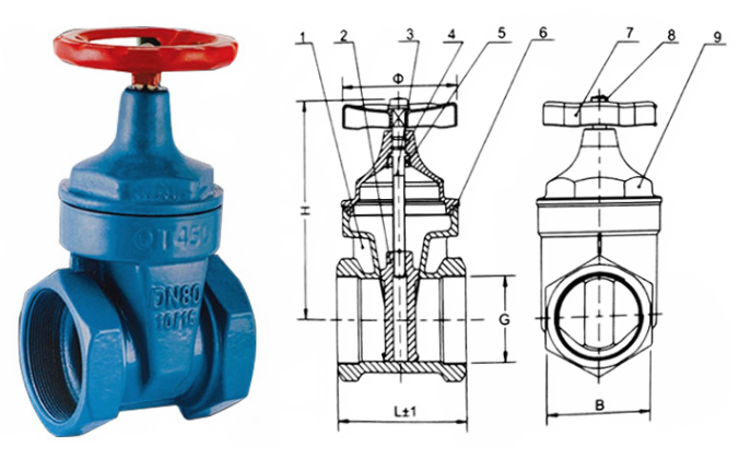 絲口軟密封閘閥外形結(jié)構(gòu)圖: