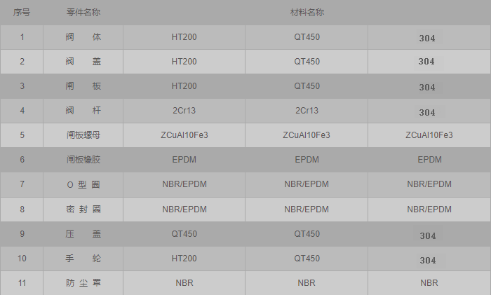 不銹鋼軟密封暗桿閘閥零件材料: