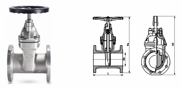 不銹鋼軟密封暗桿閘閥外形結構圖: