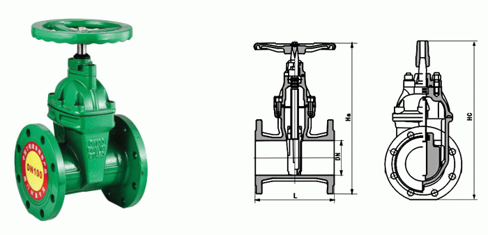 法蘭暗桿閘閥外形結(jié)構(gòu)圖: