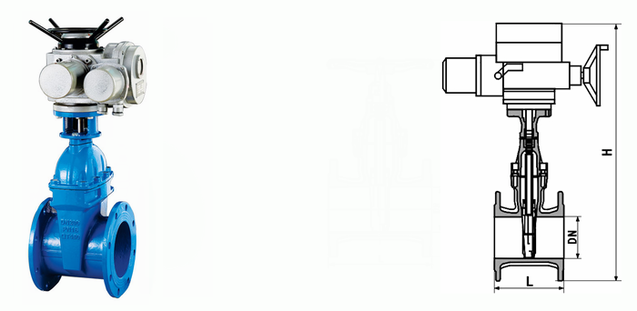 電動(dòng)暗杠軟密封閘閥外形結(jié)構(gòu)圖: