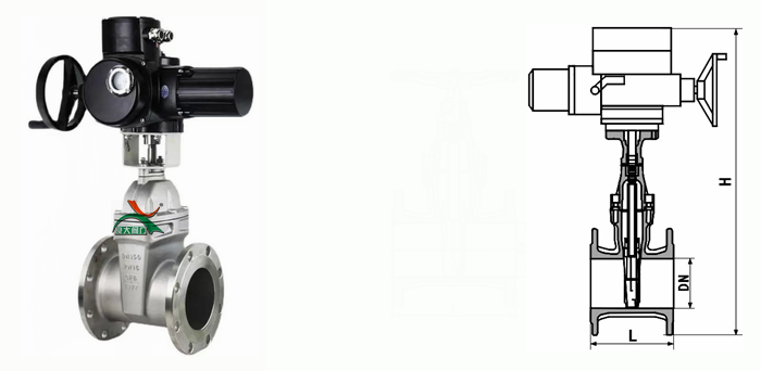 不銹鋼電動軟密封閘閥外形結(jié)構(gòu)圖: