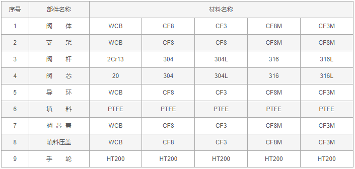 反應釜柱塞式放料閥零件材料: