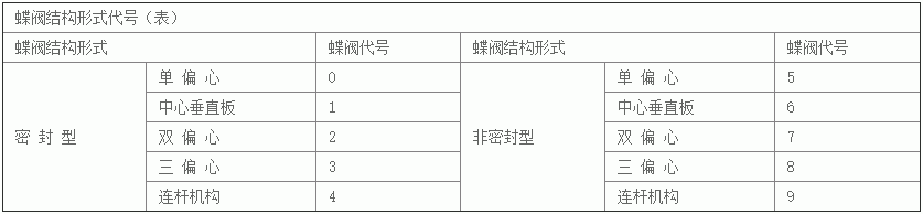 ①蝶閥結(jié)構(gòu)形式 (代號):