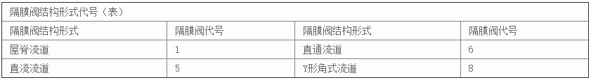 ⑥隔膜閥結(jié)構(gòu)形式代號: