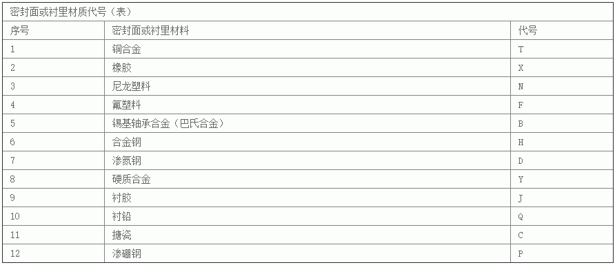 注:1、由閥體直接加工的閥座密封材料代號用“W”表示。